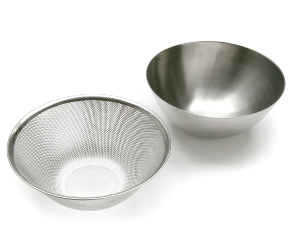 A strainer and bowl set, made in stainless steel, 27 cm in diameter.